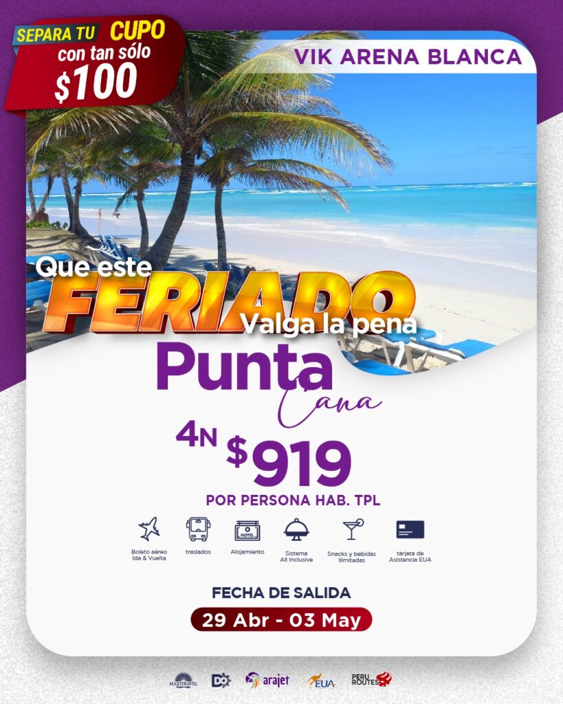 Somos una mayorista de viajes exclusiva, con más de 17 años de experiencia en el mundo del turismo, que ofrece vacaciones con programas todo incluido a precios incomparables a destinos como Punta Cana, Panamá y Quito.
